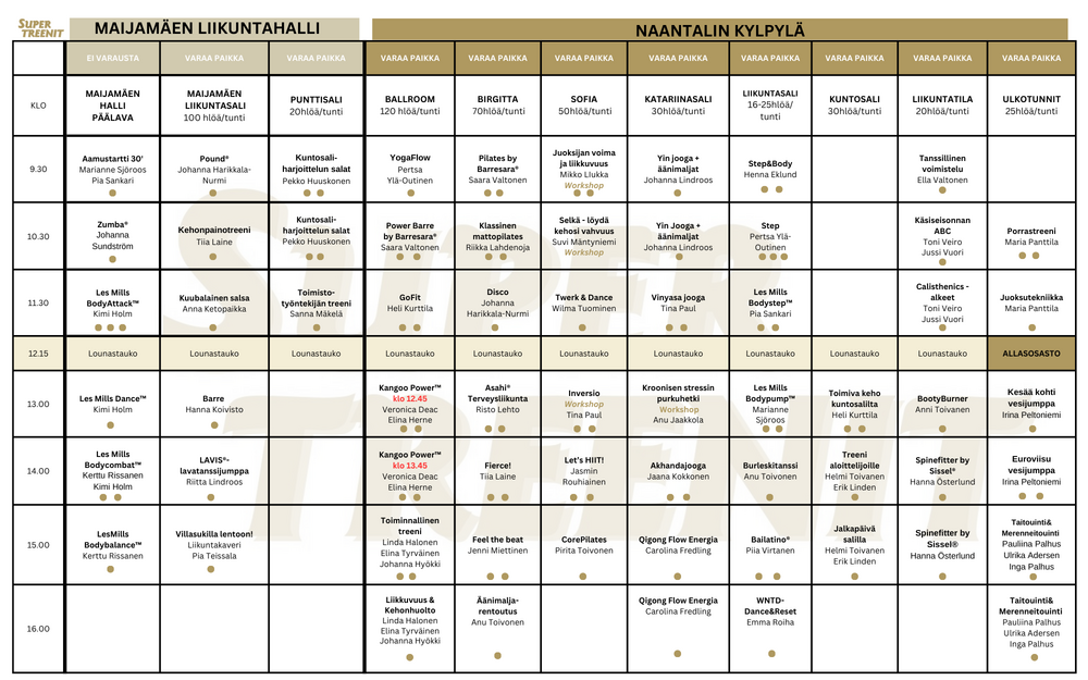 HUOM! Tänä vuonna allasosastolle pääsee tapahtumapäivänä etuhintaan 2tunniksi maksamalla spa-aulaan saunaemännälle 12€ (norm.30€) SuperTreenit ranneketta näyttämällä ilman etukäteen varattua vuoroa.